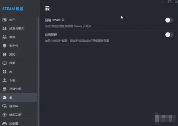 2、然后点击Steam设置,将Steam云关闭。注意玩家最好先将自己的存档保存一份。