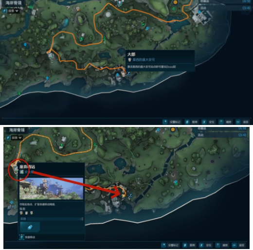 路径非常好跑,路径在地图标点位置,大家基本上都打过,叫大郎(拿开颅者宝箱奖励和滑翔翼的地方)。