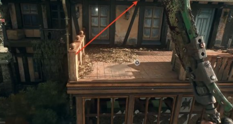 从别墅区如图所示位置出发,前往小楼的三楼。