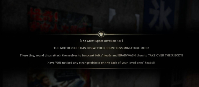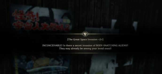 收集说明:电影海报是解锁UFO结局的关键收集品,必须严格按照指定顺序进行互动。若互动顺序错误,可以重新按照正确顺序再次尝试,系统会以最后一次互动顺序为准。