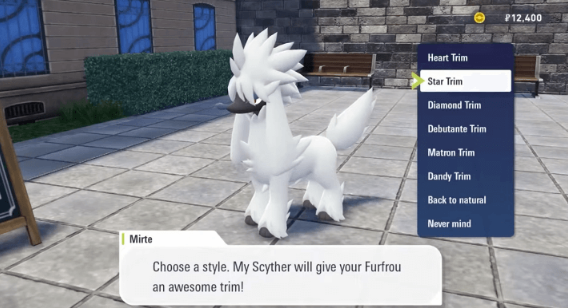让他们的 Scyther 为 Furfrou 修剪造型,花费些 Poke Dollars,Mirte 就能施展魔法。