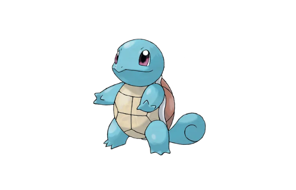 杰尼龟有着一双紫红色的大眼睛,四肢均为三趾,尾巴呈小型波浪状。